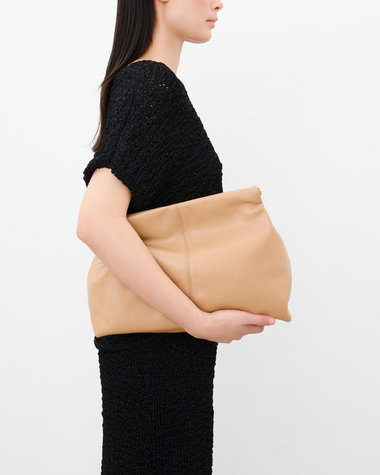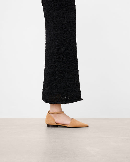 Footwear highlights include loose-shafted boots and soft, unlined loafers in the finest suede, pairing elegance with comfort. Sculpted suede bags bring a touch of artistry, reflecting our dedication to refined materials and thoughtful design.